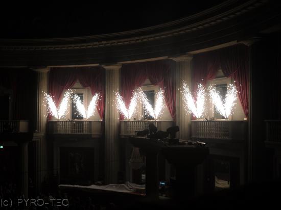 Ein phantastischer Farbenzauber aus Funken und Flammen. Extra für den Bühnen- und Studiobereich (innen und außen) entwickelte und gesetzlich zugelassene, raucharme Effekte, wie z.B. Blitze, Sonnen, Wasserfälle, Feuerschriften, Feuertöpfe, Fontänen (in allen Variationen), Flammensäulen, Flammenschalen und viele andere neue Effekte.
