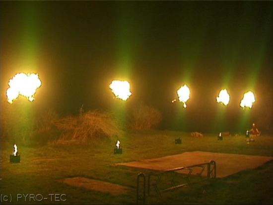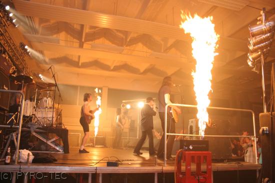 Zugelassene Bühnengasanlage mit bis zu 16 Brennern zur Erzeugung von Flammensäulen und Feuerpilzen von 1m bis 6m Höhe für den Innen- und Außenbereich geeignet. (Vermietung, Durchführung und Verkauf)