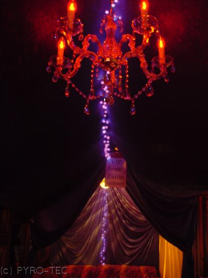 - Flammensäulen, Farbscheinwerfer, Lasereffekte