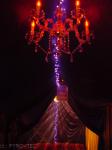 - Samtstoffe in Rot und Gold, Spiegelkugeln, Kronleuchter