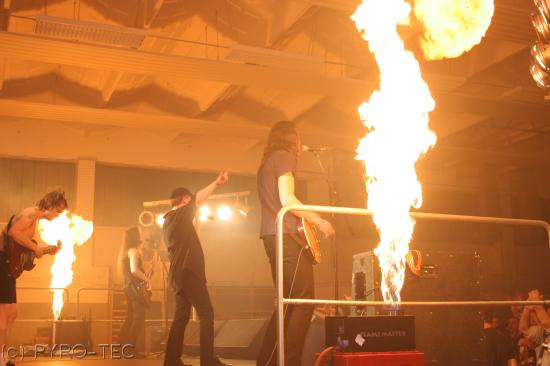 Zugelassene Bühnengasanlage mit bis zu 16 Brennern zur Erzeugung von Flammensäulen und Feuerpilzen von 1m bis 6m Höhe für den Innen- und Außenbereich geeignet. (Vermietung, Durchführung und Verkauf)